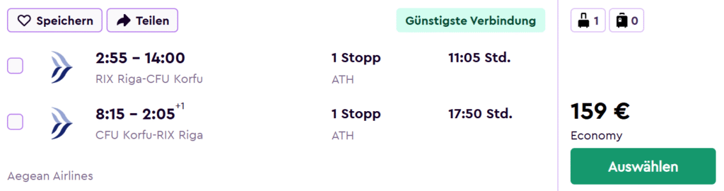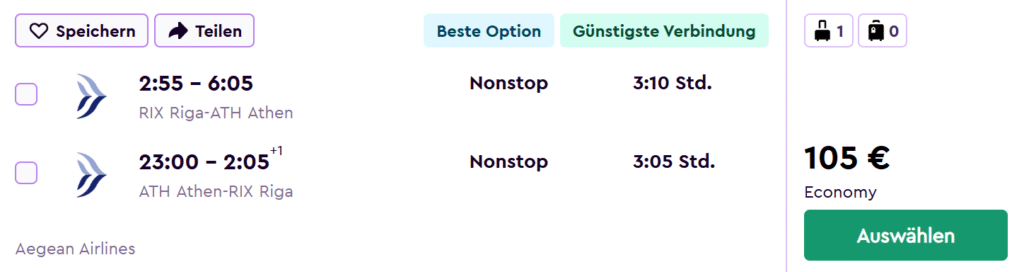 Rīga – Atēnas – Rīga (105 EUR)