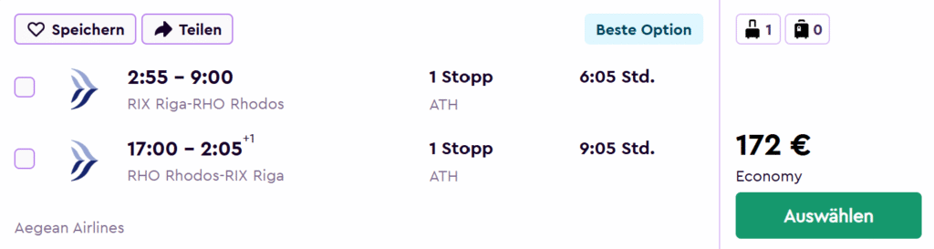 Rīga – Rodas sala – Rīga (172 EUR)
