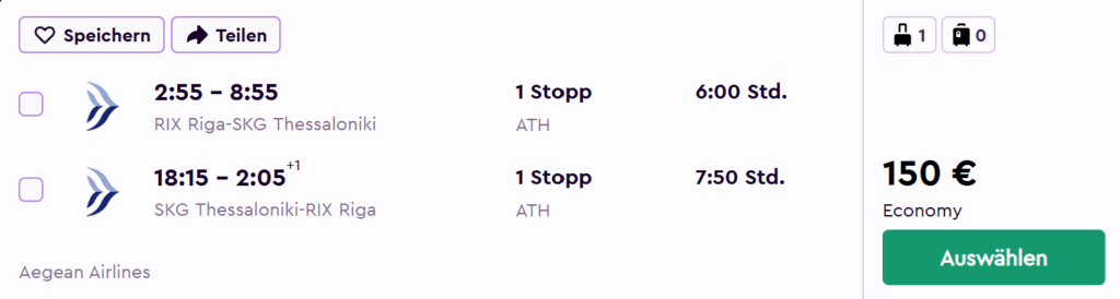 Rīga – Saloniki – Rīga (150 EUR)
