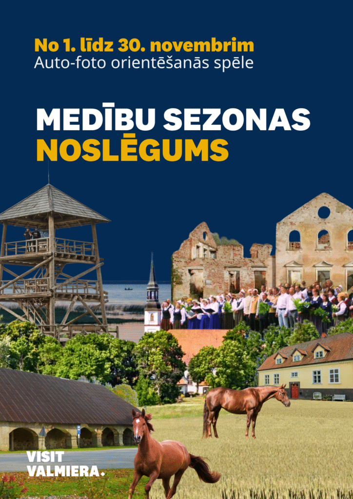 No 1. līdz 30. novembrim ikviens piedzīvojumu entuziasts aicināts piedalīties aizraujošā tūrisma aktivitātē auto-foto orientēšanās spēlē “Medību sezonas noslēgums”. Tā apvienos dažādus elementus no gada laikā aizvadītajām tematiskajām medību spēlēm Valmieras novadā, kā vadmotīvs bija piedzīvojumu medīšana un ļaušanās atklājēju garam.